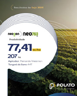 Aptidão para abertura de plantio, bom arranque inicial, alto potencial de engalhamento e excelente sanidade foliar.
