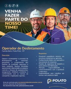 Requisitos Desejável experiência anterior em processos industriais ou agrícolas; Conhecimento básico em operação e manutenção de máquinas; Noções de segurança do trabalho e boas práticas de fabricação; Atenção, responsabilidade e compromisso com a qualidade e segurança; Disponibilidade para trabalhar em turnos e em ambiente fabril.